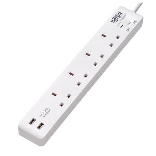 Tripp Lite Power Extension 4Way 3Pin UK 2 USB 13A 1.8M – White (PS4B18USBW)